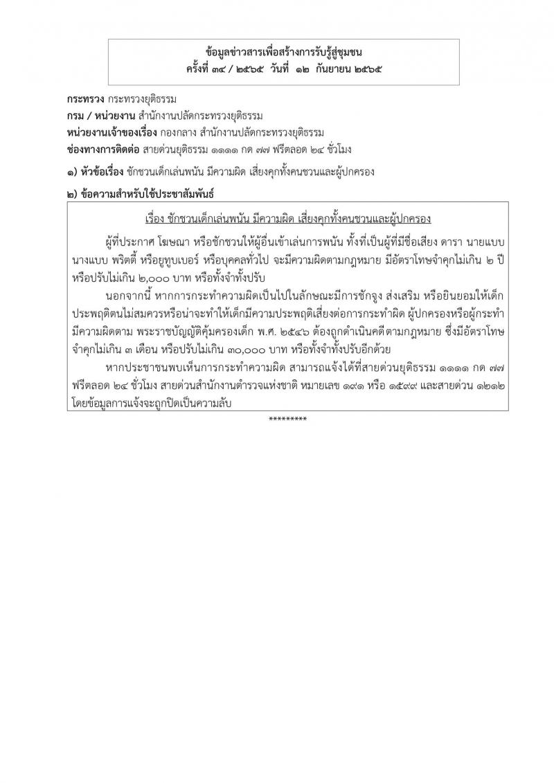 องค์การบริหารส่วนตำบลวังกระแจะ ขอประชาสัมพันธ์ข้อมูลข่าวสารเพื่อสร้างการรับรู้สู่ชุมชน ครั้งที่ 34/2565