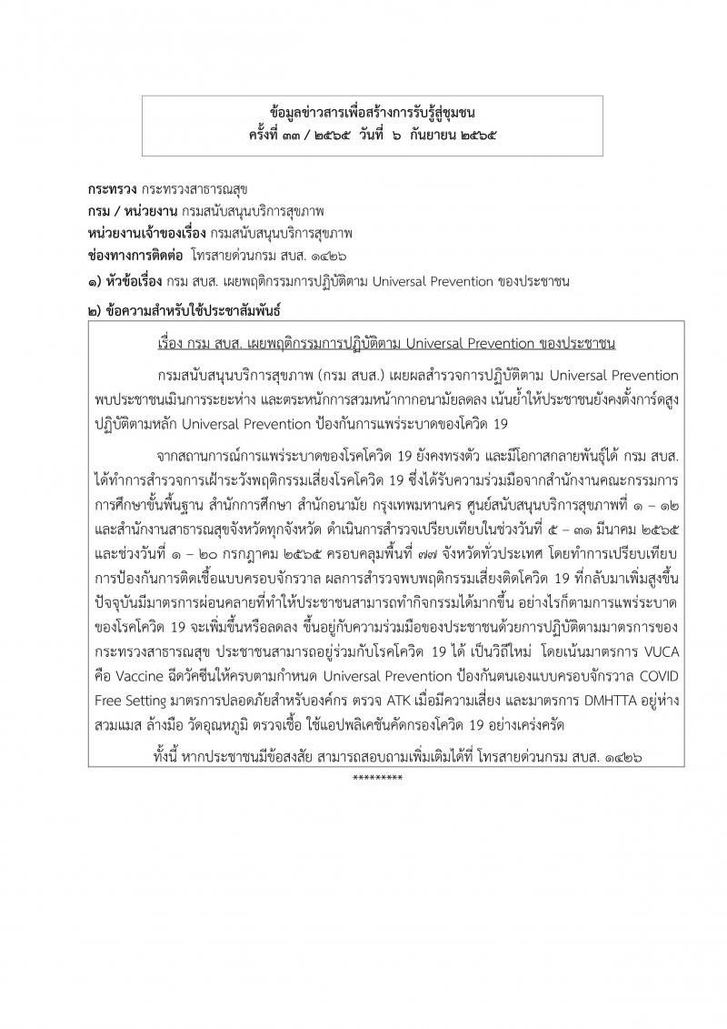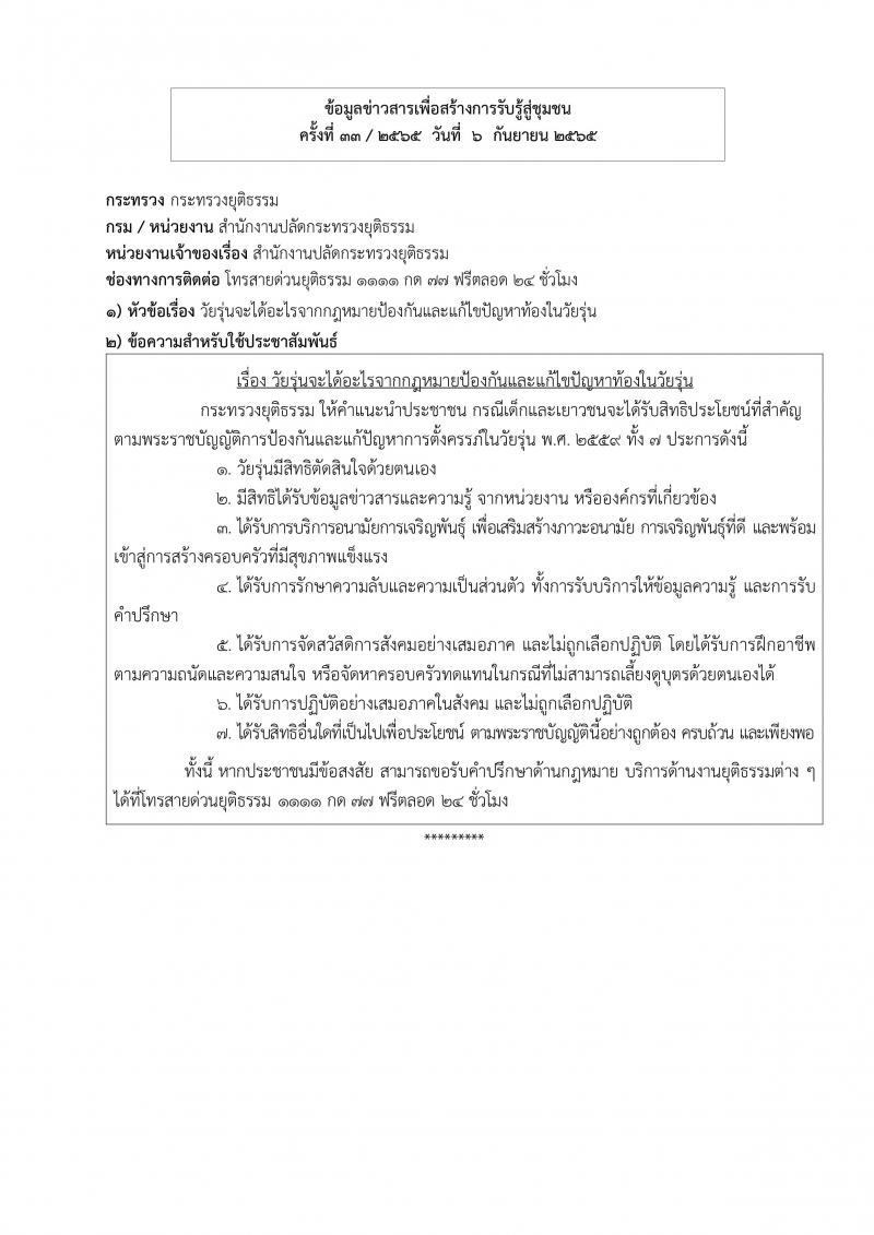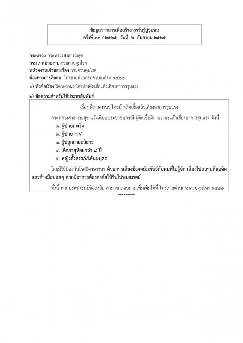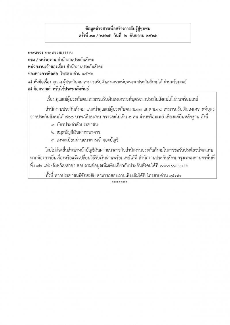 องค์การบริหารส่วนตำบลวังกระแจะ ขอประชาสัมพันธ์ข้อมูลข่าวสารเพื่อสร้างการรับรู้สู่ชุมชน ครั้งที่ 33/2565