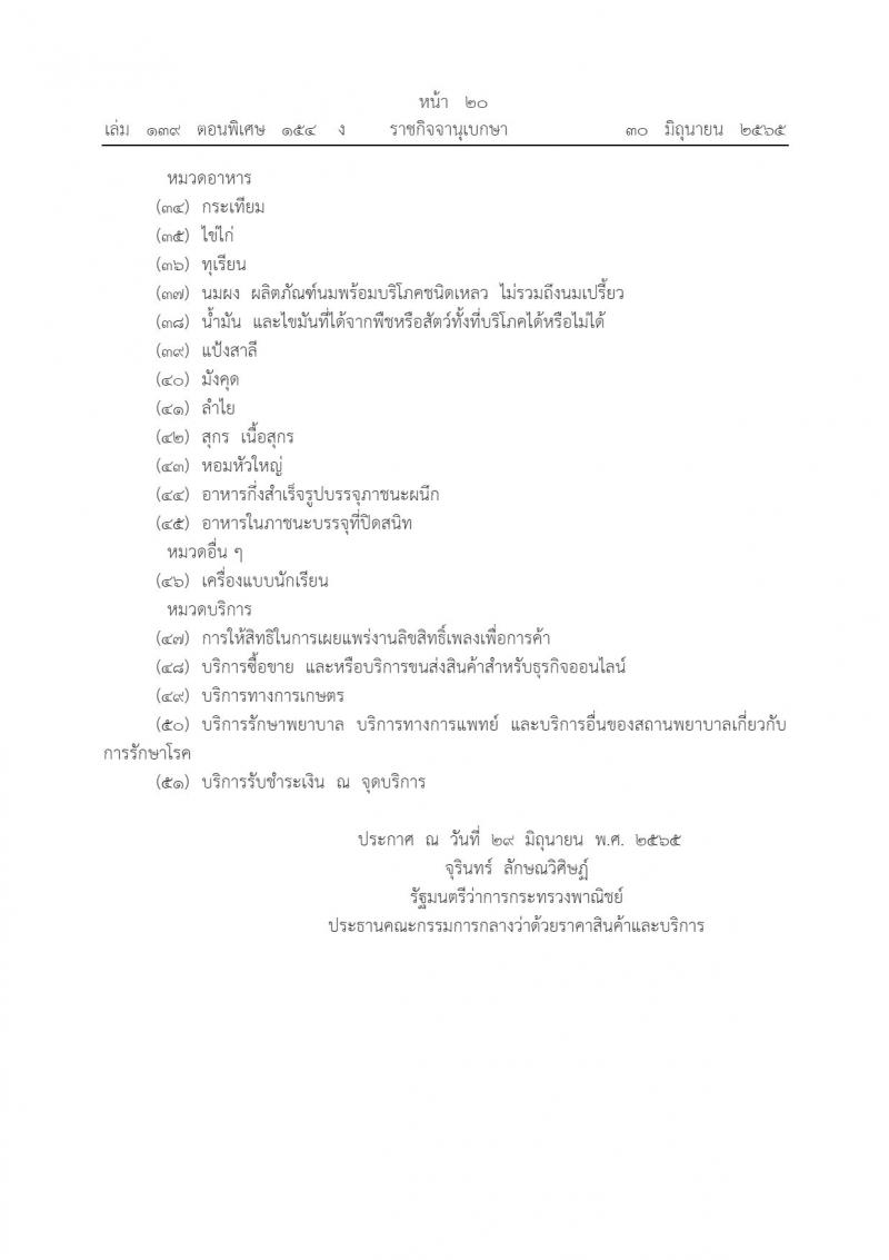 ประกาศคณะกรรมการกลางว่าด้วยราคาสินค้าและบริการ