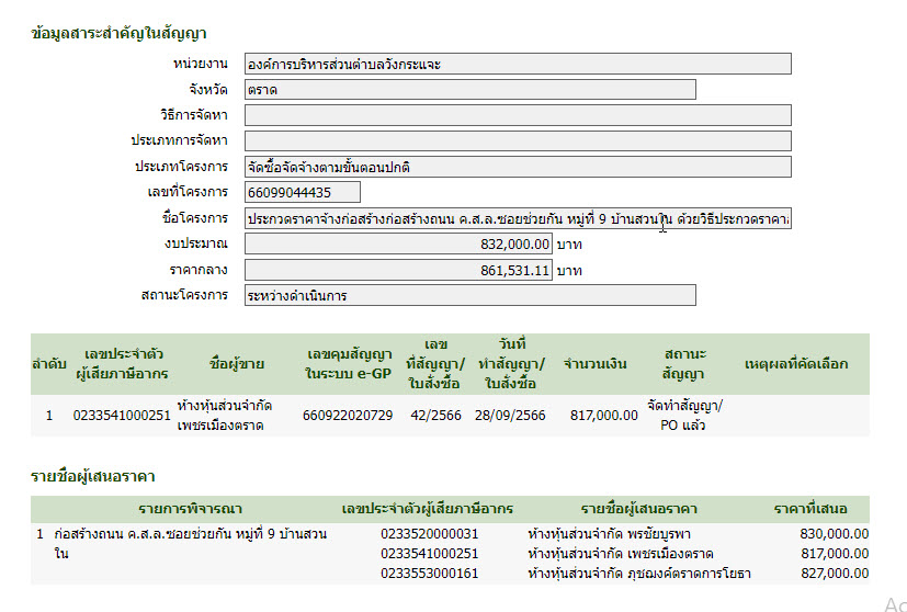 ประกาศสาระสำคัญของสัญญาจ้างก่อสร้าง เลขที่ 42/2566