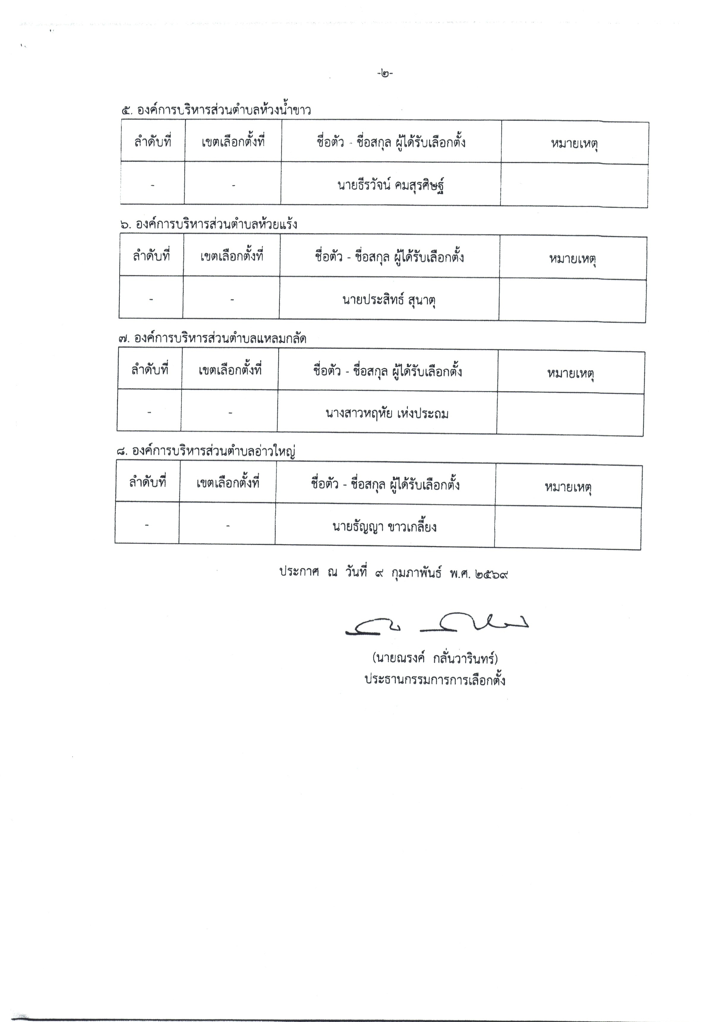 ประกาศผลการเลือกตั้งนายกองค์การบริหารส่วนตำบลวังกระแจะ