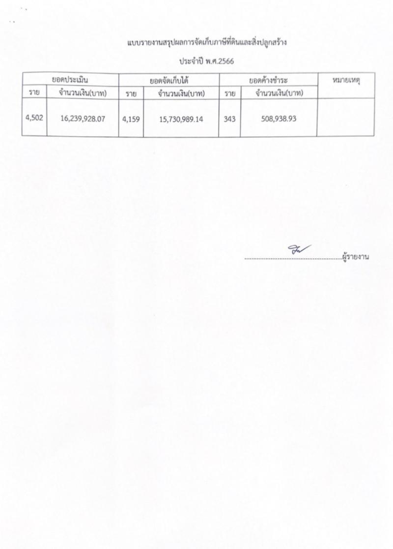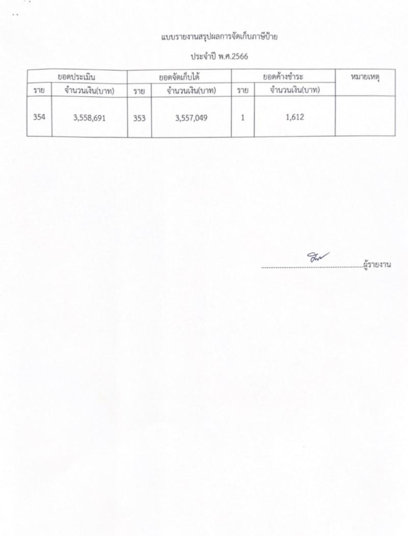 ประกาศองค์การบริหารส่วนตำบลวังกระแจะ เรื่อง สรุปผลการจัดเก็บภาษีที่ดินและสิ่งปลูกสร้าง และภาษีป้าย ประจำปี พ.ศ. ๒๕๖๖