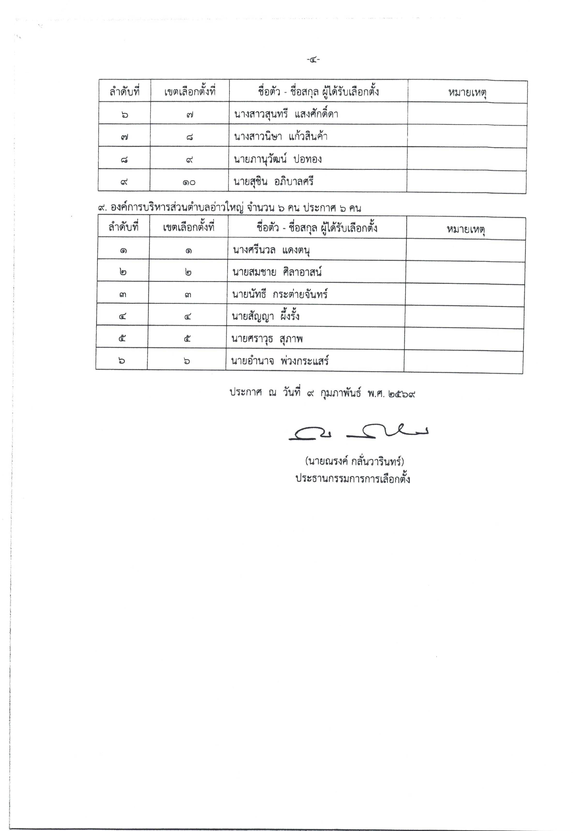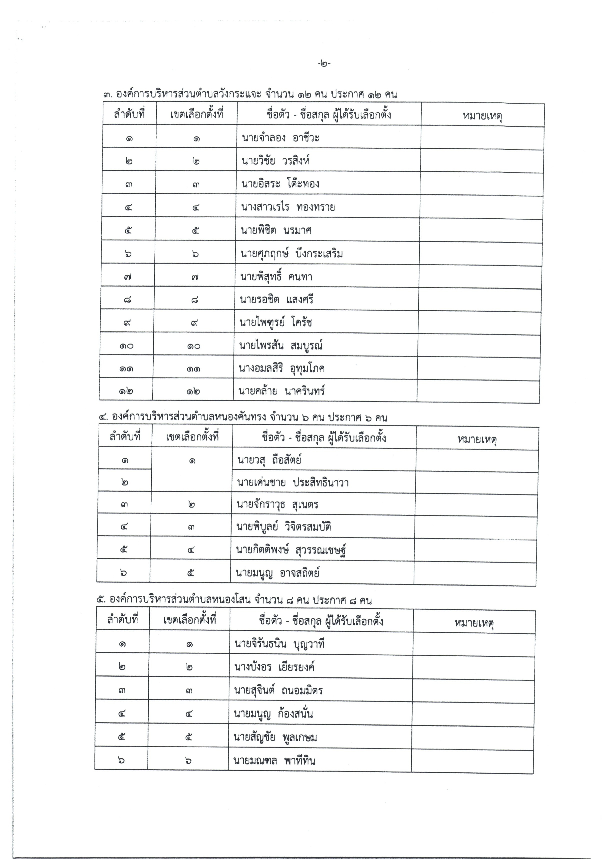 ประกาศผลการเลือกตั้งสมาชิกสภาองค์การบริหารส่วนตำบลวังกระแจะ