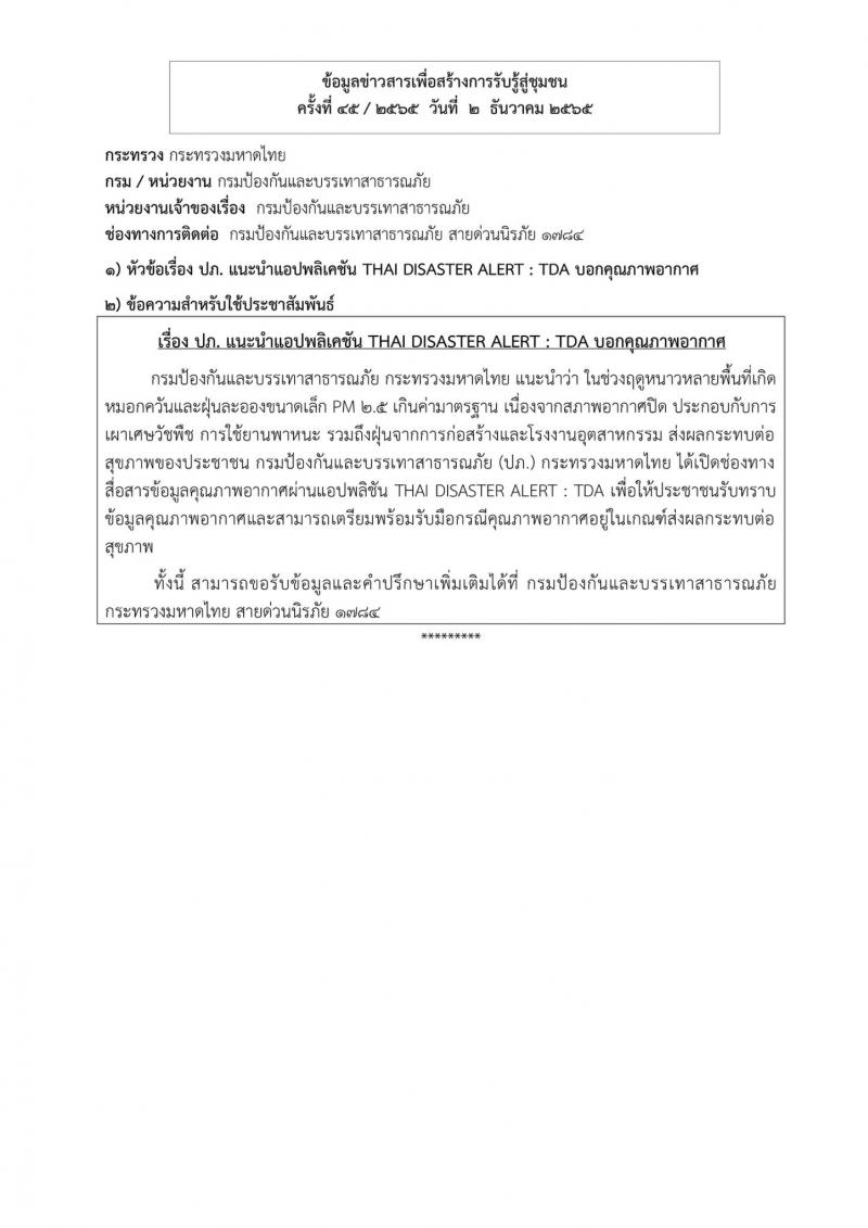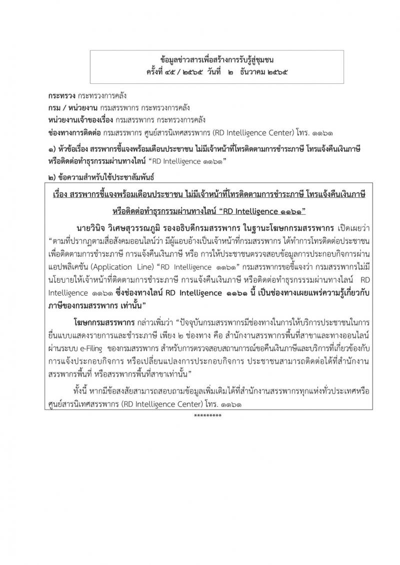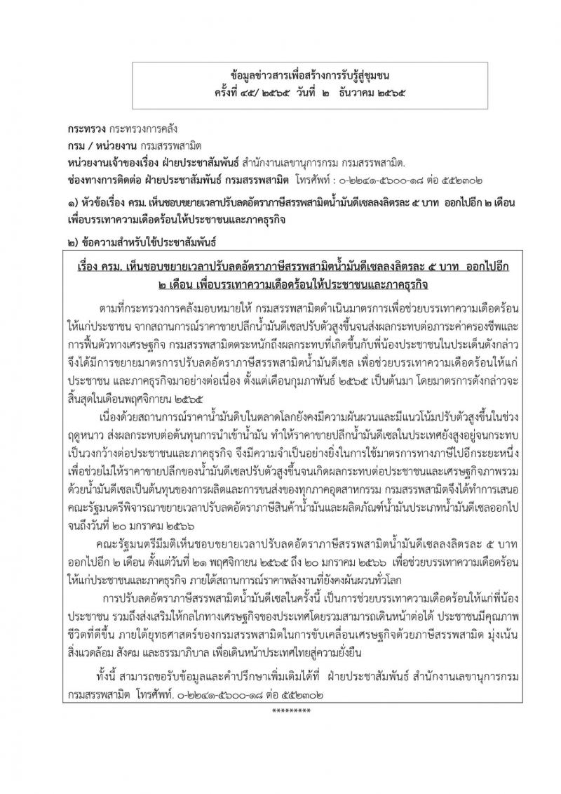 องค์การบริหารส่วนตำบลวังกระแจะ ขอประชาสัมพันธ์ข่าวสารเพื่อสร้างการรับรู้สู่ชุมชน ครั้งที่ 45/2565