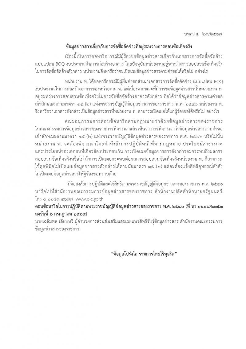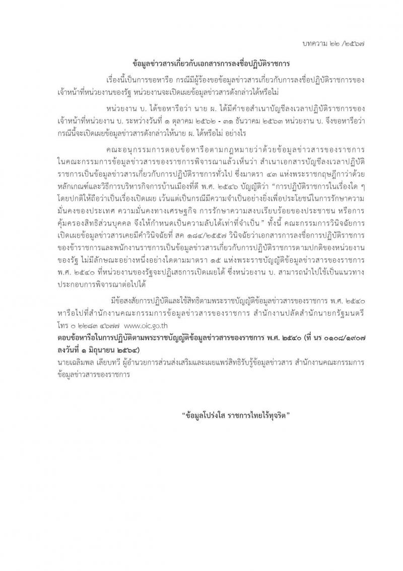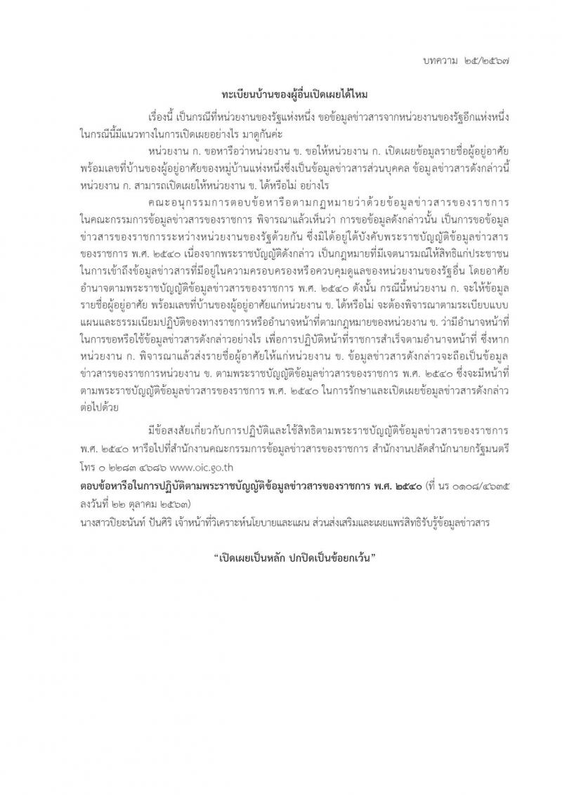 เผยแพร่ความรู้เกี่ยวกับพระราชบัญญัติขข้อมูลข่าวสารของราชการ พ.ศ.2540 รวม 5 บทความ