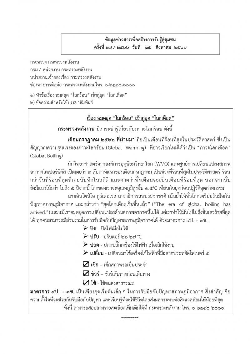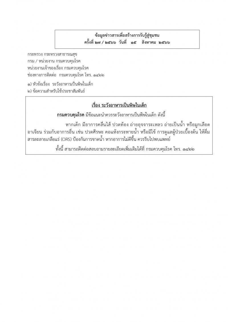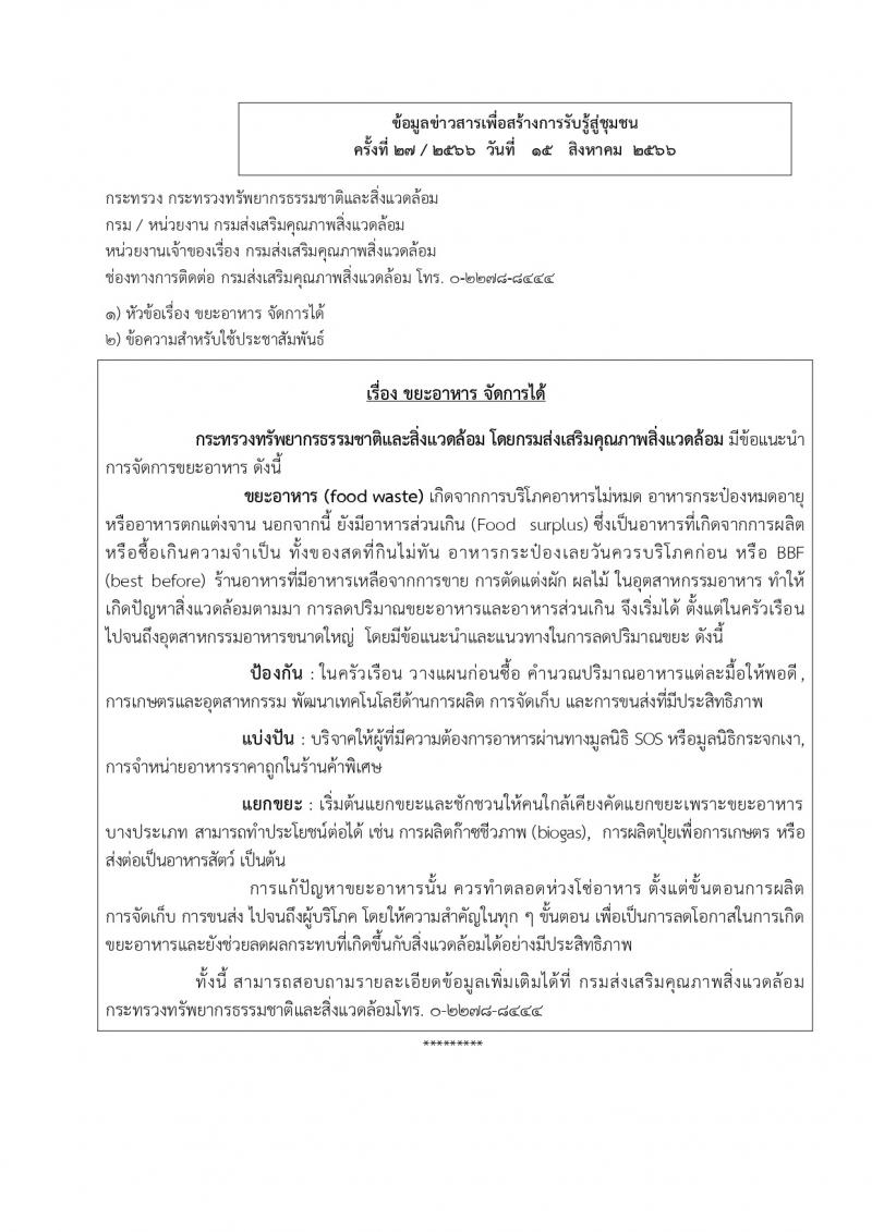 องค์การบริหารส่วนตำบลวังกระแจะ ขอประชาสัมพันธ์ข่าวสารเพื่อสร้างการรับรู้สู่ชุมชน ครั้งที่ 27/2566