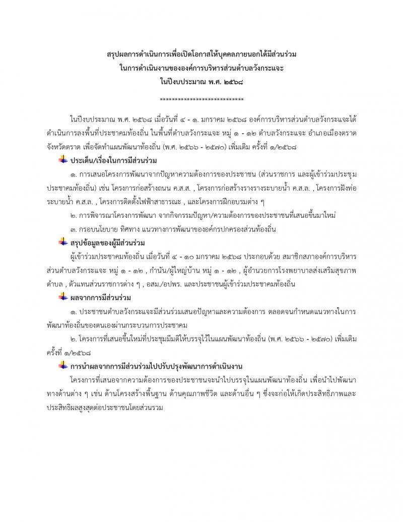 การมีส่วนร่วมของบุคคลภายนอกผ่านการประชาคมหมู่บ้าน ระหว่างวันที่ 4 - 10 มกราคม 2568