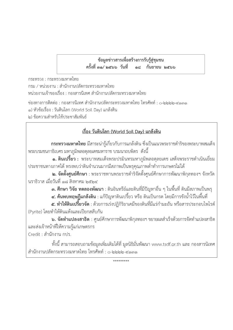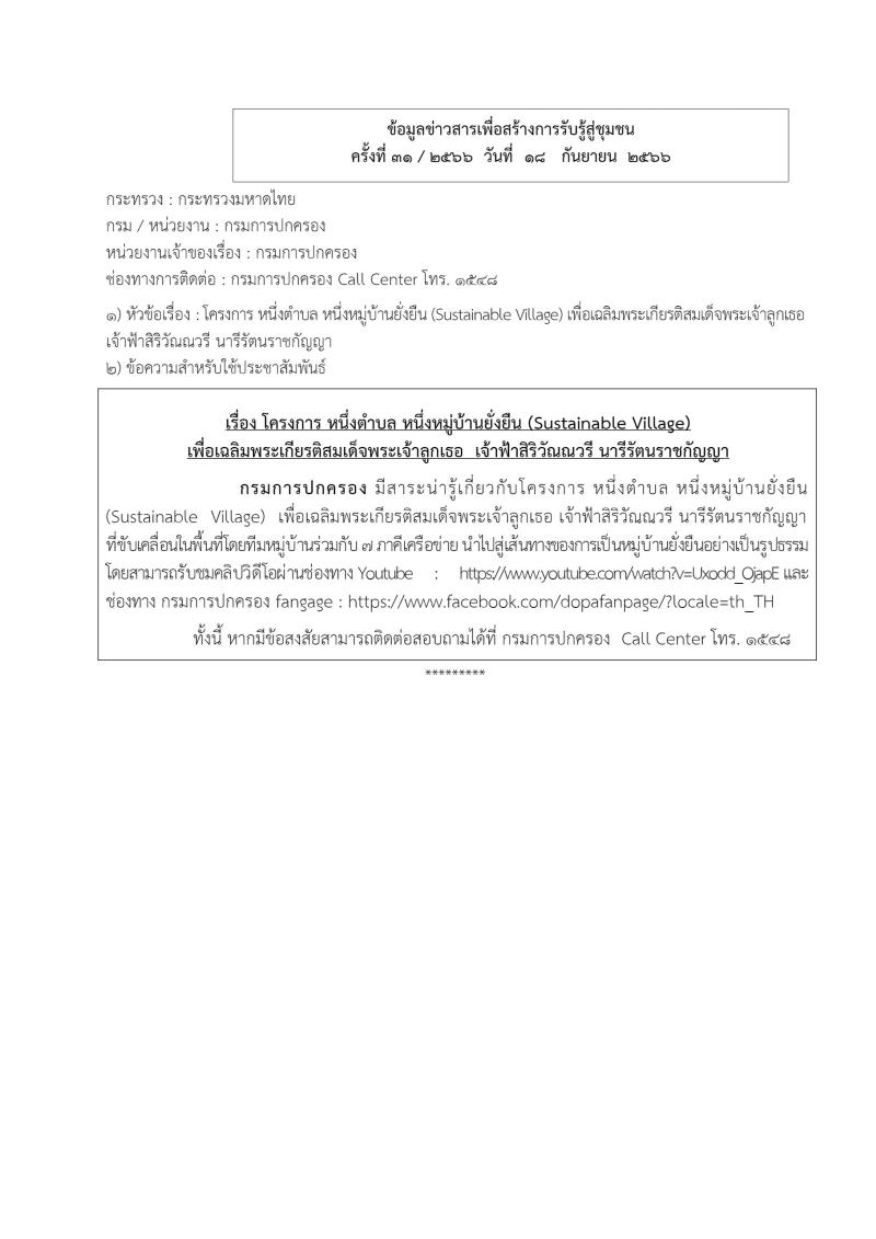 องค์การบริหารส่วนตำบลวังกระแจะ ขอประชาสัมพันธ์ข่าวสารเพื่อสร้างการรับรู้สู่ชุมชน ครั้งที่ 31/2566
