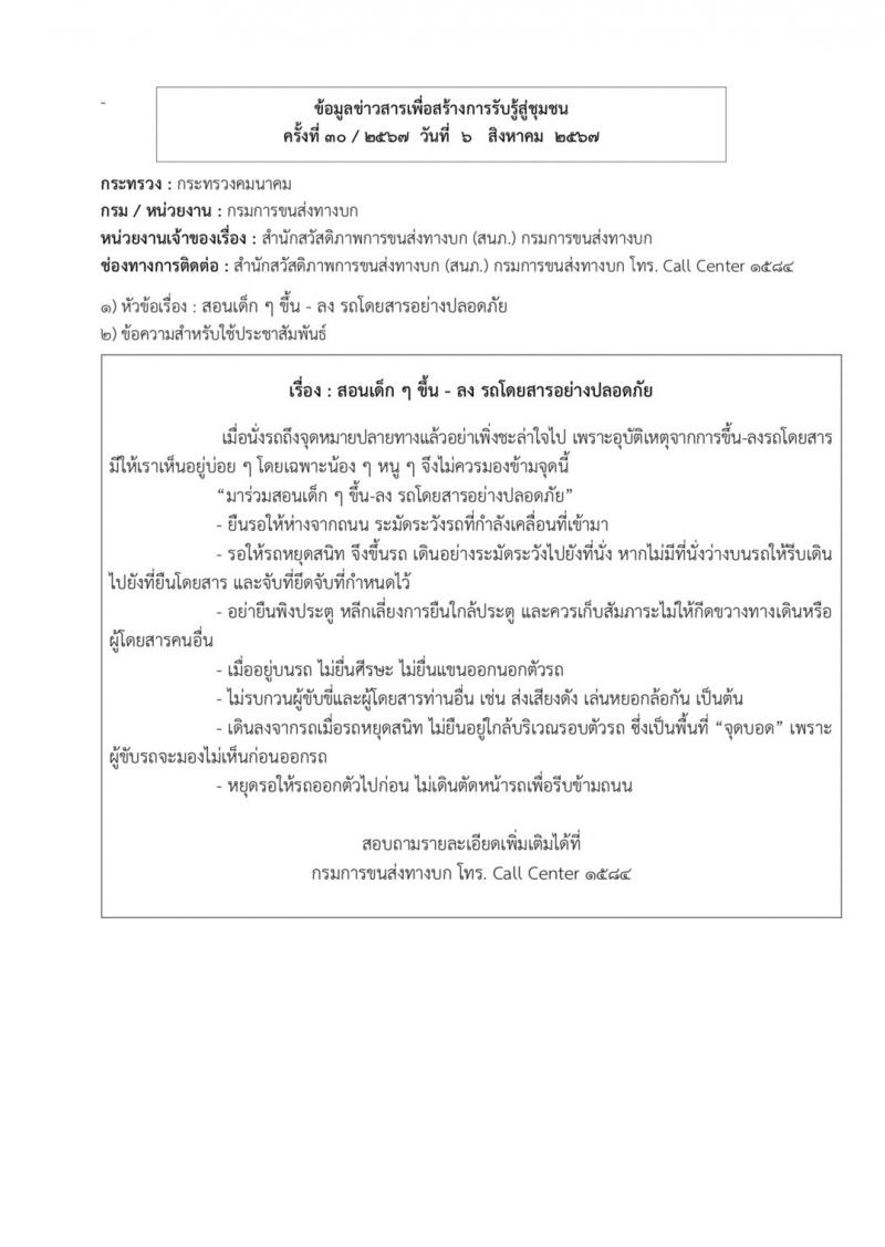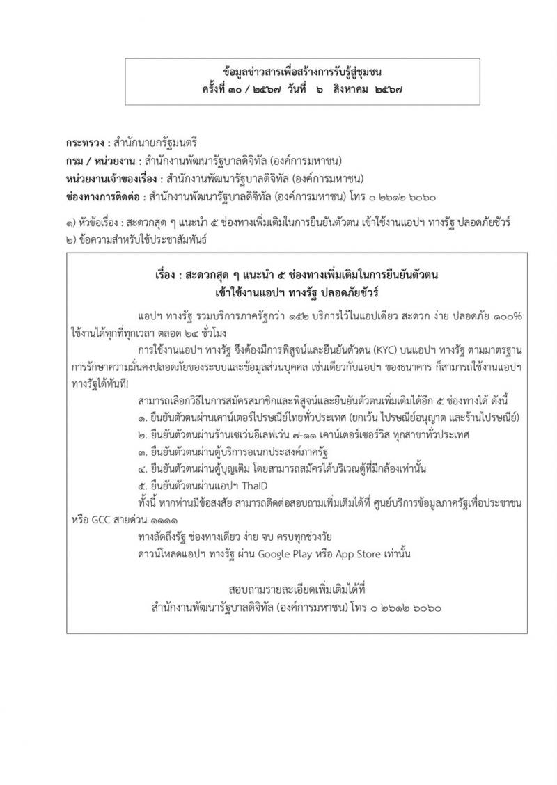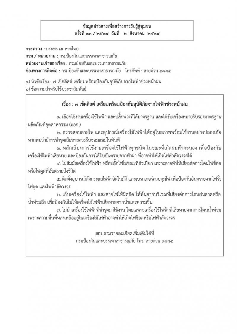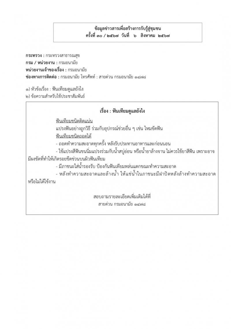 ข้อมูลข่าวสารเพื่อสร้างการรับรู้สู่ชุมชน ครั้งที่ ๓๐/๒๕๖๗