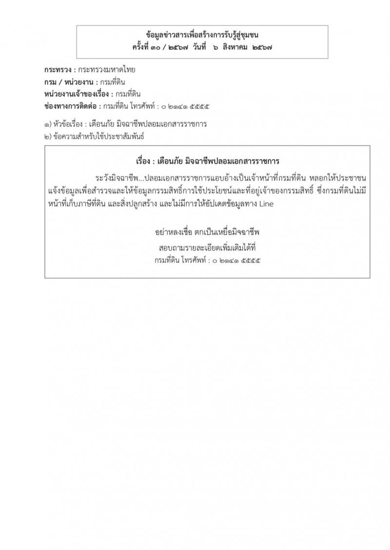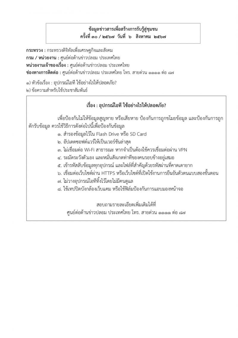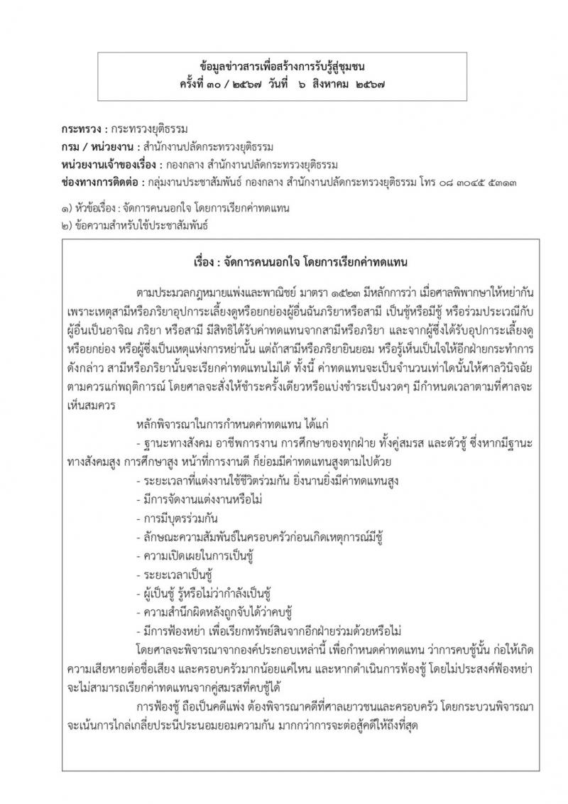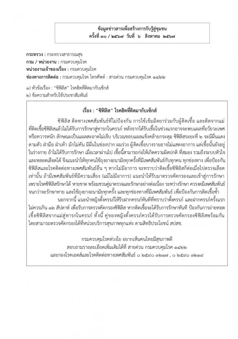 ข้อมูลข่าวสารเพื่อสร้างการรับรู้สู่ชุมชน ครั้งที่ ๓๐/๒๕๖๗