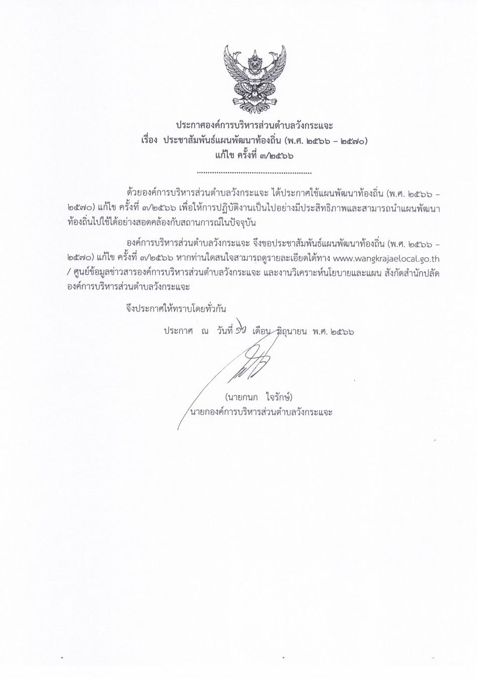 ประชาสัมพันธ์แผนพัฒนาท้องถิ่น ( พ.ศ.๒๕๖๖ - ๒๕๗๐) แก้ไข ครั้งที่ ๓/๒๕๖๖ [16 มิถุนายน 2566]