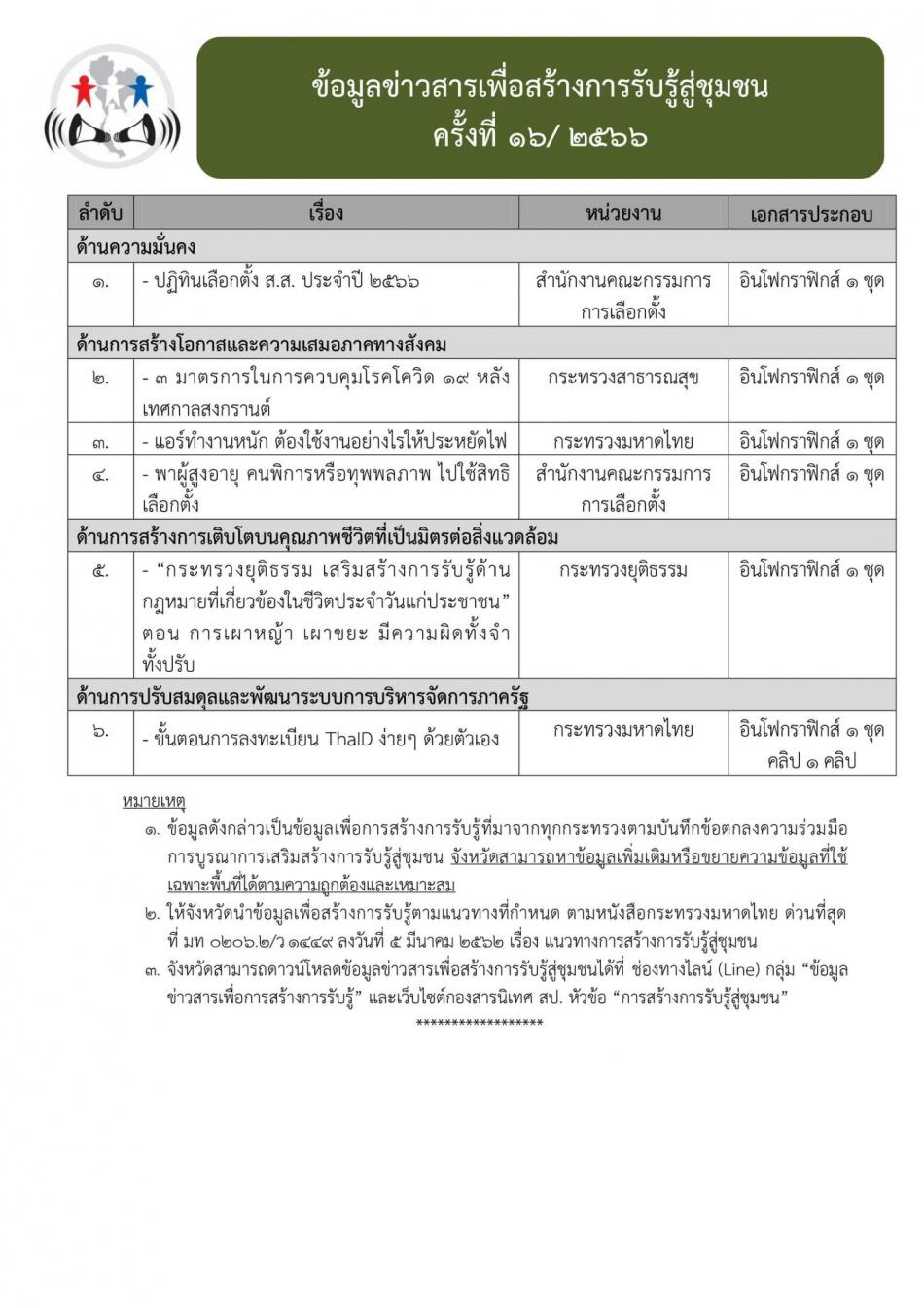 องค์การบริหารส่วนตำบลวังกระแจะ ขอประชาสัมพันธ์ข่าวสารเพื่อสร้างการรับรู้สู่ชุมชน ครั้งที่ 16/2566 [18 พฤษภาคม 2566]