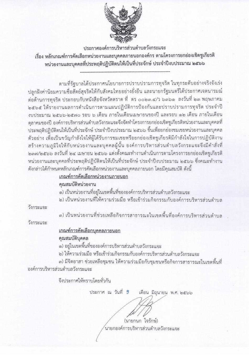 หลักเกณฑ์การคัดเลือกหน่วยงานและบุคคลภายนอกองค์กร ตามโครงการยกย่องเชิดชูเกียรติหน่วยงานและบุคคลที่ประพฤติปฏิบัติตนให้เป็นที่ประจักษ์ ประจำปีงบประมาณ ๒๕๖๖ [1 มิถุนายน 2566]
