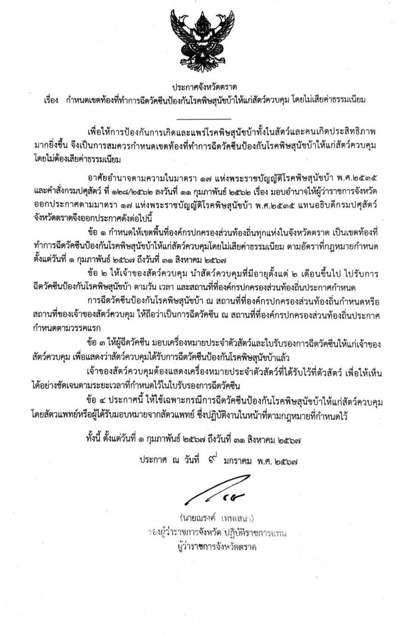 ประชาสัมพันธ์ให้บริการฉีดวัคซีนป้องกันโรคพิษสุนัขบ้า ประจำปีงบประมาณ 2567 โดยกองสาธารณสุขและสิ่งแวดล้อม อบต.วังกระแจะ