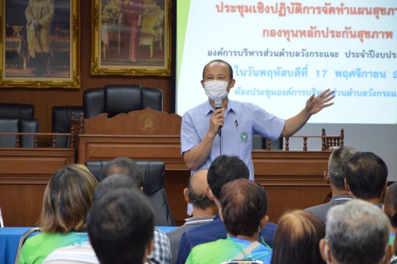 วันที่ 17 พฤศจิกายน 2565 กองทุนหลักประกันสุขภาพองค์การบริหารส่วนตำบลวังกระแจะ ได้จัดโครงการบริหารจัดการกองทุนหลักประกันสุขภาพองค์การบริหารส่วนตำบลวังกระแจะ ประชุมเชิงปฏิบัติการจัดทำแผนสุขภาพชุมชนกองทุนหลักประกันสุขภาพ องค์การบริหารส่วนตำบลวังกระแจะ ประจำปี 2566 ณ ห้องประชุมชั้น2 องค์การบริหารส่วนตำบลวังกระแจะ